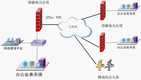 目前,大部分電力電網(wǎng)公司,總部、省市之間通過專線進行組網(wǎng)。但由于專線中傳輸?shù)闹匾獦I(yè)務(wù)數(shù)據(jù)多為明文數(shù)據(jù),另外有些偏遠的機構(gòu)無法通過專線接入,現(xiàn)在越來越多的電力公司開始通過IPSec VPN在互聯(lián)網(wǎng)上建立安全隧道來實現(xiàn)業(yè)務(wù)數(shù)據(jù)的加密傳輸。