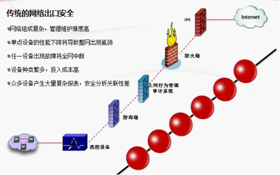 相比較傳統(tǒng)的網(wǎng)絡(luò)出口安全解決方案,網(wǎng)神NSG出口安全解決方案,簡(jiǎn)化了出口網(wǎng)絡(luò)的組成復(fù)雜度,降低了用戶管理維護(hù)難度和投入的費(fèi)用,減少了單點(diǎn)設(shè)備性能下降以及故障導(dǎo)致的整個(gè)網(wǎng)絡(luò)的瓶頸,高效整合的報(bào)表系統(tǒng),方便用戶的安全分析,有效降低了用戶的安全成本投入